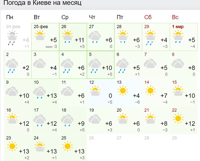 прогноз погоды в киеве