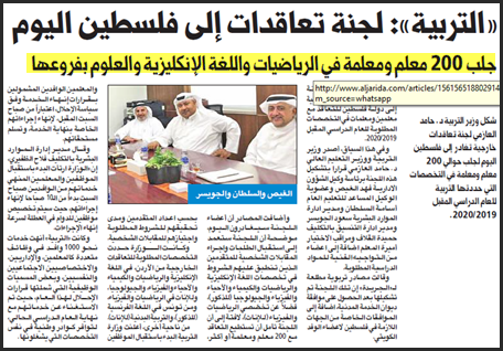لجنة التعاقدات الخارجية بوزارة التربية الكويتية تغادر للتعاقد مع معلمين فلسطينيين اليوم