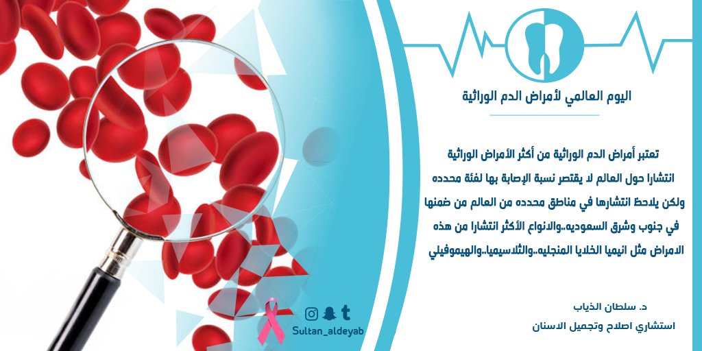 د سلطان الذياب Pa Twitter تعتبر أمراض الدم الوراثية من أكثر الأمراض الوراثية انتشارا حول العالم لا يقتصر نسبة الإصابة بها لفئة محدده ولاكن يلاحظ انتشارها في مناطق محدده من العالم من ضمنها