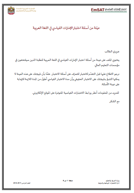عي نة من أسئلة اختبار الإمارات القياسي في اللغة العربية مدرستي الاماراتية