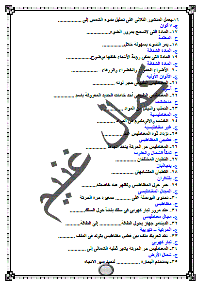 Adz4u Omniawagdy بنك أسئلة اختبارية للمراجعة النهائية فى العلوم للصف الخامس الابتدائى الفصل الدراسى الأول أ كمال غنيم