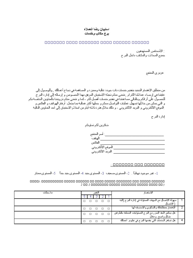 نموذج استبيان رضى العملاء إبتكار القيمة للإستشارات