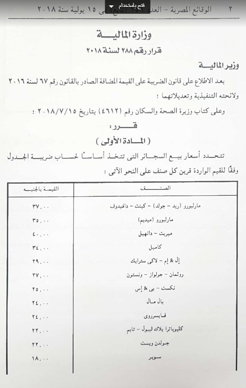 Uzivatel نجوم مصرية Na Twitteru وزارة المالية تعلن رسميا أسعار السجائر الأجنبى بعد زيادة ضريبة القيمة المضافة عليها الضريبة القيمة المضافة كينت مارلبورو نكست Https T Co Wwflt7ymrk