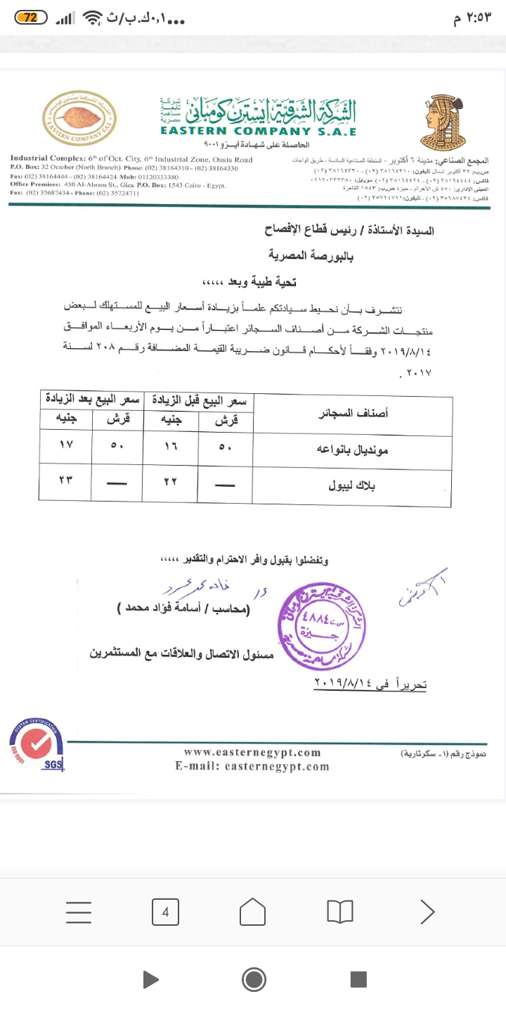 المالية المصرية ت قر الأسعار الجديدة للسجائر والتبغ رسميا وثيقة معلومات مباشر