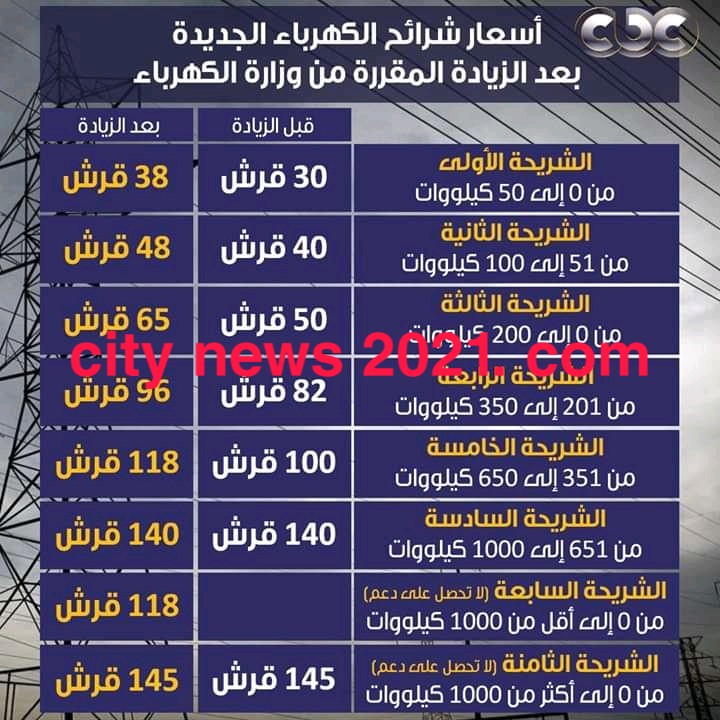 زيادة اسعار الكهرباء أسعار شرائح الكهرباء للعام المالي الجديد 2020 2021 كورة توب