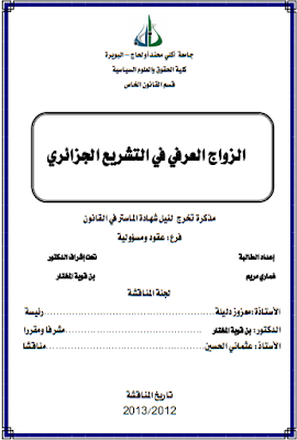 مذكرة ماستر الزواج العرفي في التشريع الجزائري Pdf علوم قانونية وادارية