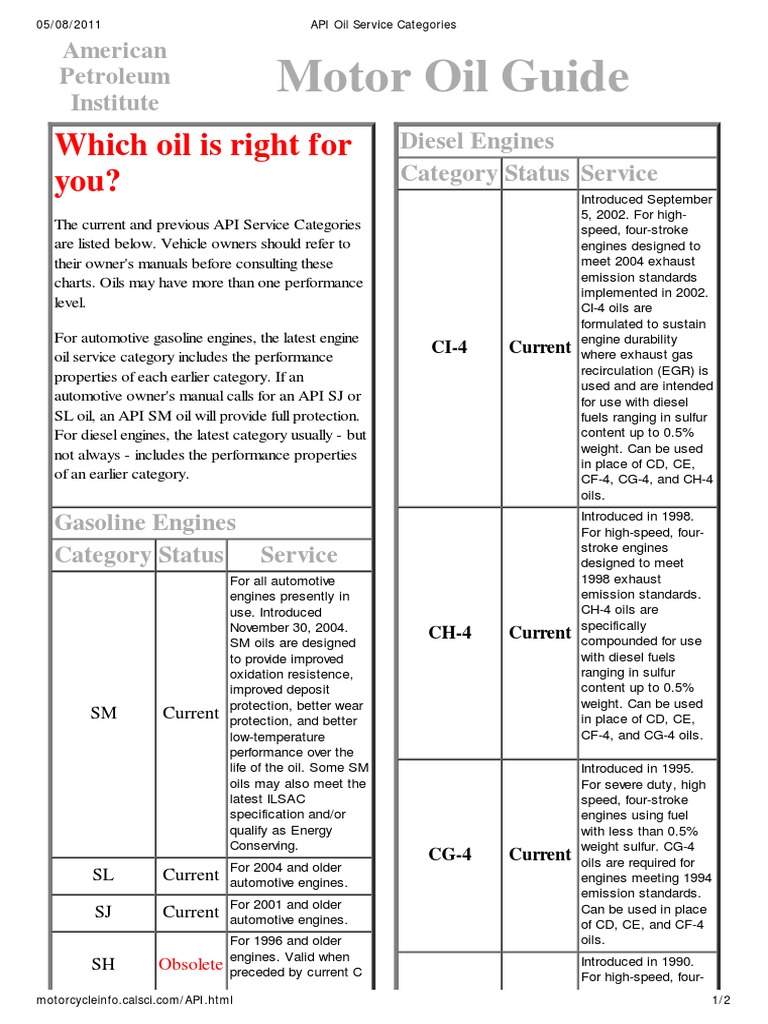 As also explained earlier more modern oils are not necessarily adapted for older engines. The answer is look for the letters that follow the words api service in the api donut. For 2001 and older automotive engines. For vehicles built between 2002 and 2010 ch 4.