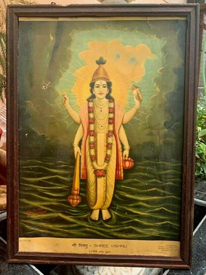 1900 C Vintage Rare Hindu Lord Shree Vishnu Bhagwan Standing Lithograph Print Ebay